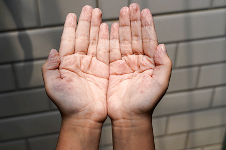 Skin that’s often wet can become macerated. This makes the skin wrinkly. The often-wet skin can feel soft and spongy. You may see swelling or peeling in the area.