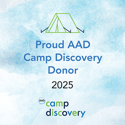 As a donor to the AAD’s Camp Discovery, my gift provides kids with chronic skin conditions the opportunity to experience summer camp and build life-long friendships. If you’d like to donate to this wonderful program, visit: aad.org/donate.