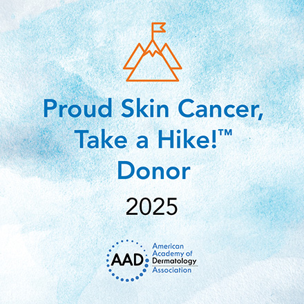 By donating to Skin Cancer, Take a Hike!™, my gift helps support free skin cancer screenings, shade structure grants, and public education initiatives. To learn how you can help support this program, visit: www.aad.org/SCTAH.